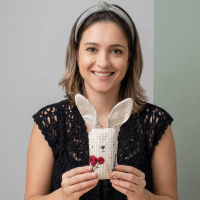 Cada peça que eu crio, como esse coelho, não nasce pronta. Ela é pensada ponto a ponto. Eu já imagino como você vai segurar a agulha, onde pode travar, o que pode dar errado… e organizo tudo pra que você consiga seguir com leveza, mesmo sendo iniciante.